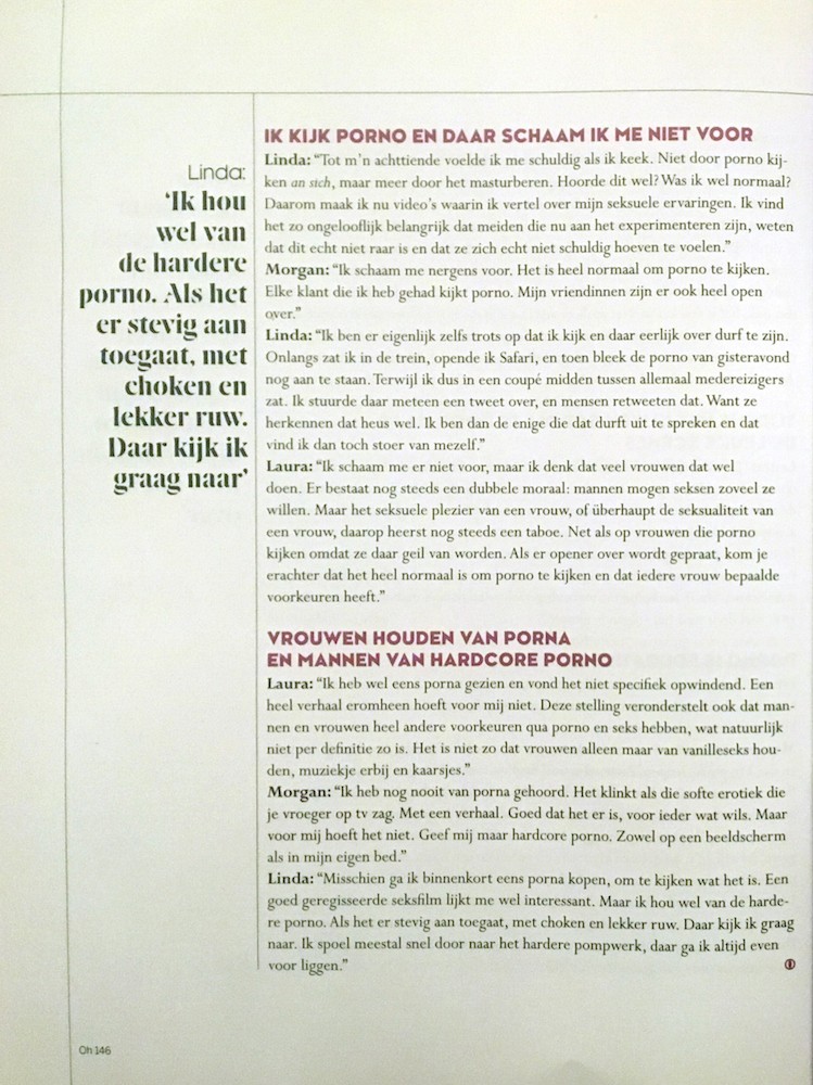 On October 1st, 2017 Oh Magazine published an article on women who enjoy watching porn. High class escort Morgan was interviewed for the article, a naughty lady who enjoys watching an exciting movie. Her answers can be found below. The (complete) original article was published in Dutch but an English translation can be found below.