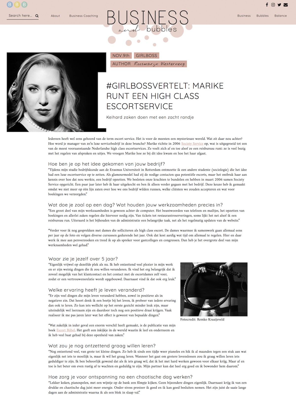 Op 9 november publiceerde het online magazine Business and Bubbles een artikel over girlboss en onderneemster Marike waarin zij vertelt over haar high class escortservice. Ook zijn er diverse stukken geplaatst waarin vragen worden gesteld aan de escorts waarin zij vertellen over diverse aspecten van werken als high class escort. Bekijk en lees het artikel hier of op de website van Business and Bubbles.