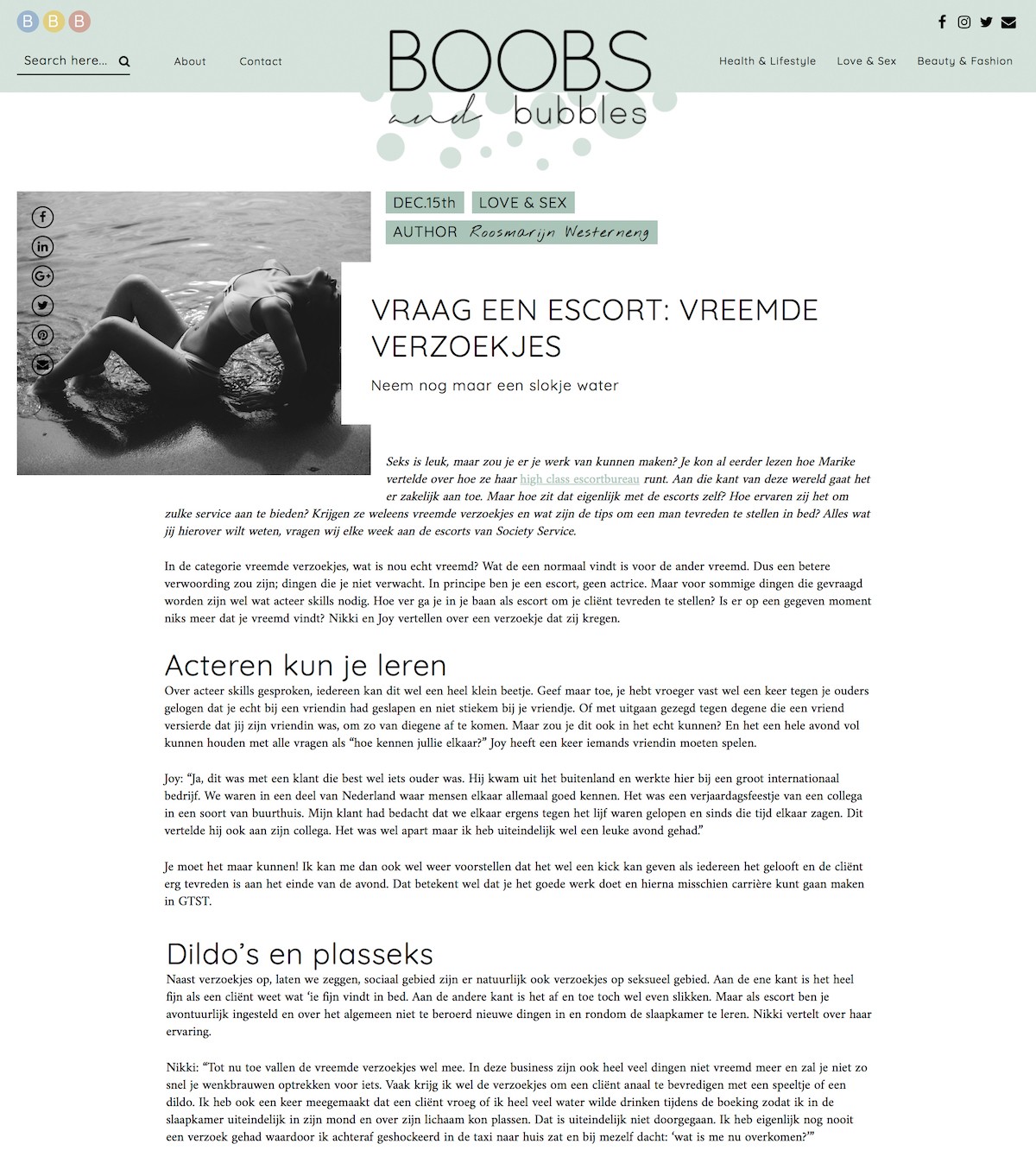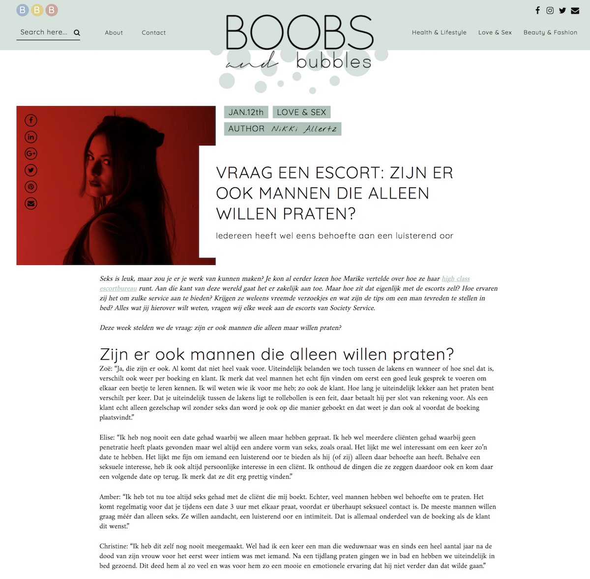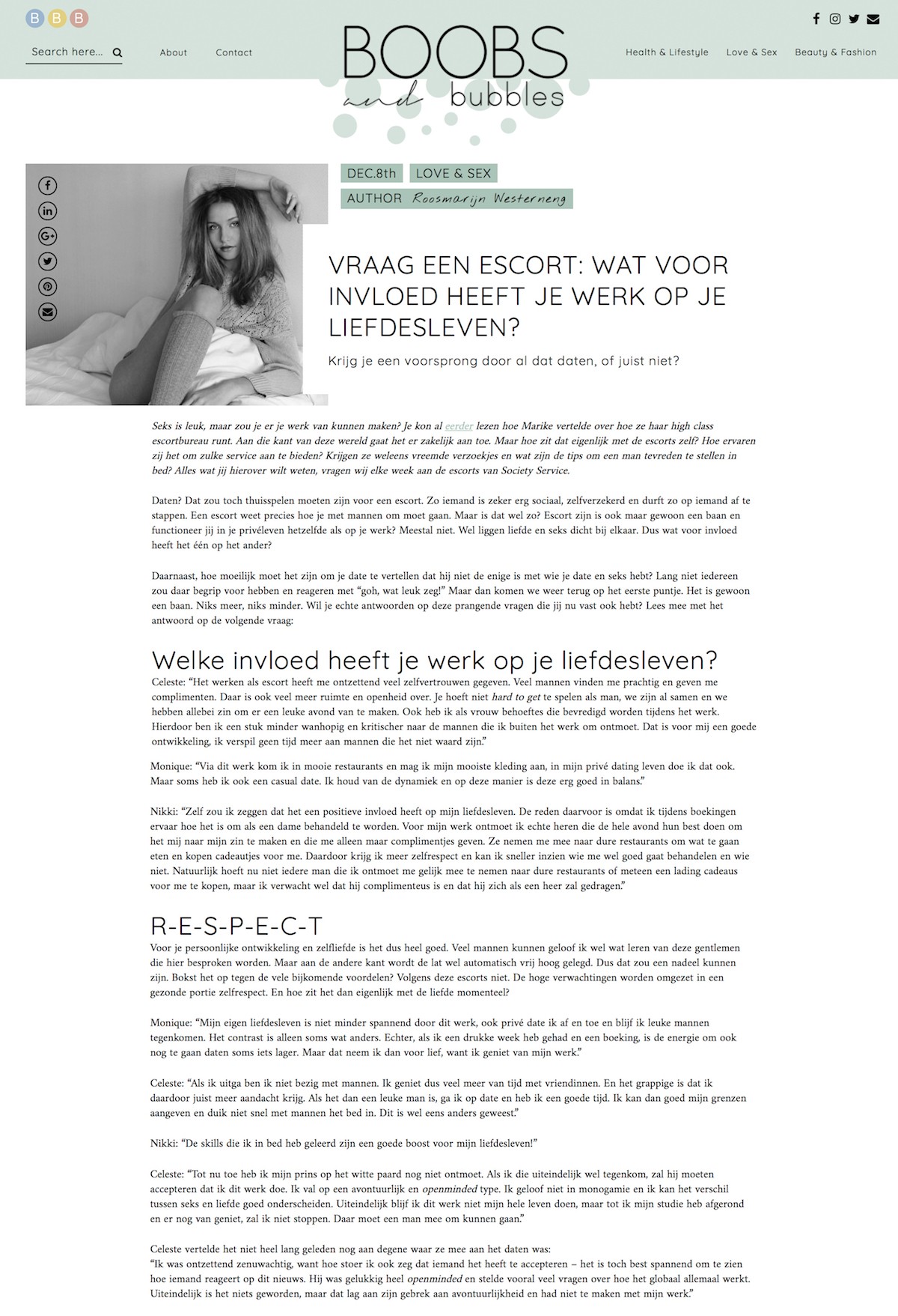 De stukken die Business and Bubbles publiceerde met vragen aan de high class escorts zijn hier te vinden: