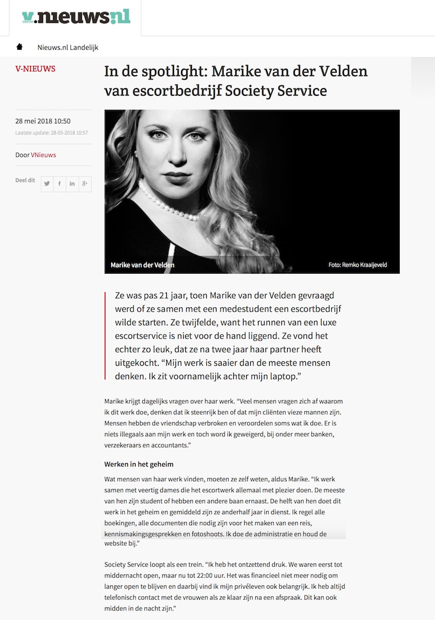 Nieuws.nl over Marike die een escortservice runt