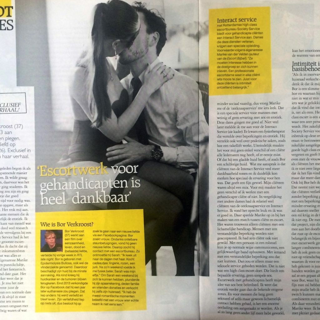 Op 27 mei publiceerde magazine Grazia een hot story over de Interact Service van escortservice Society Service. De Interact Service is een speciale service voor cliënten met een lichamelijke beperking of handicap. Het interview is met high class escort Sarah, die eerder in het nieuws kwam als de escort van de terminaal zieke Bor. Het artikel is ook te vinden bij Bloom Magazine. Lees en bekijk het artikel hier: