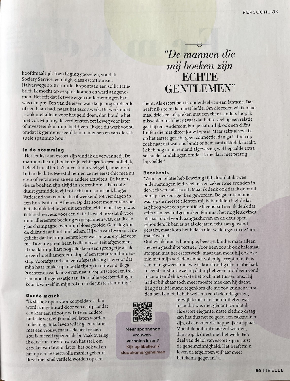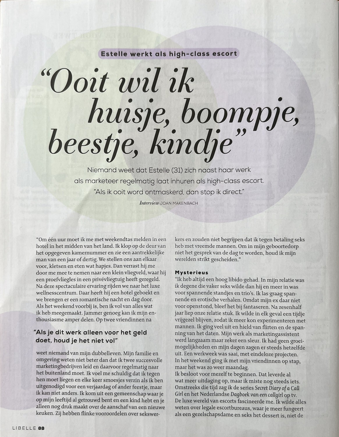 Libelle magazine over werken als high class escort