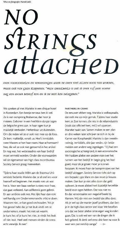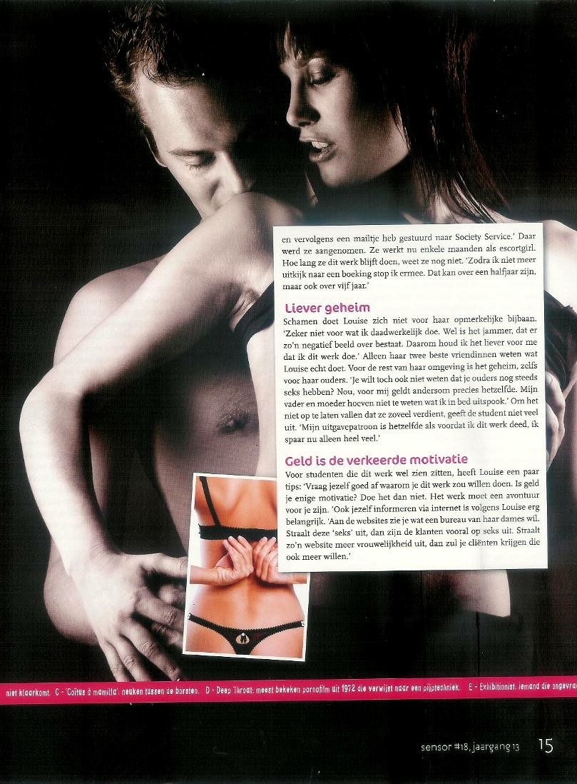 3 Juni: Publicatie in magazine Sensor "Studente overdag, escortdame by night"