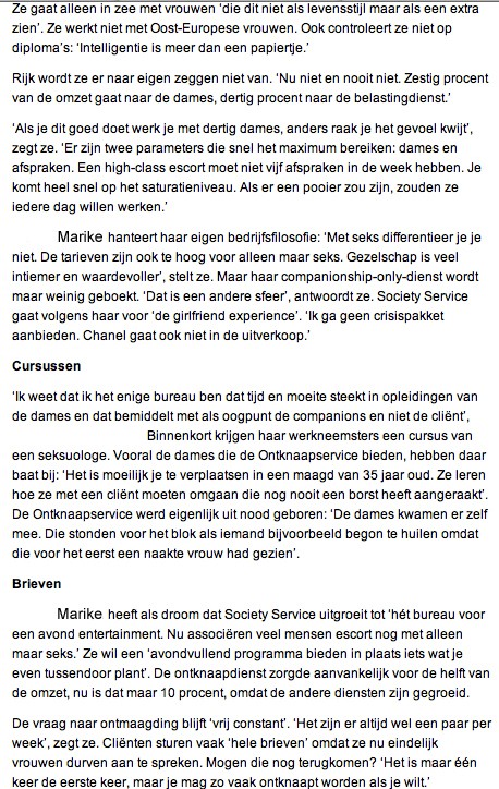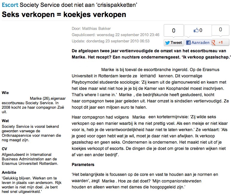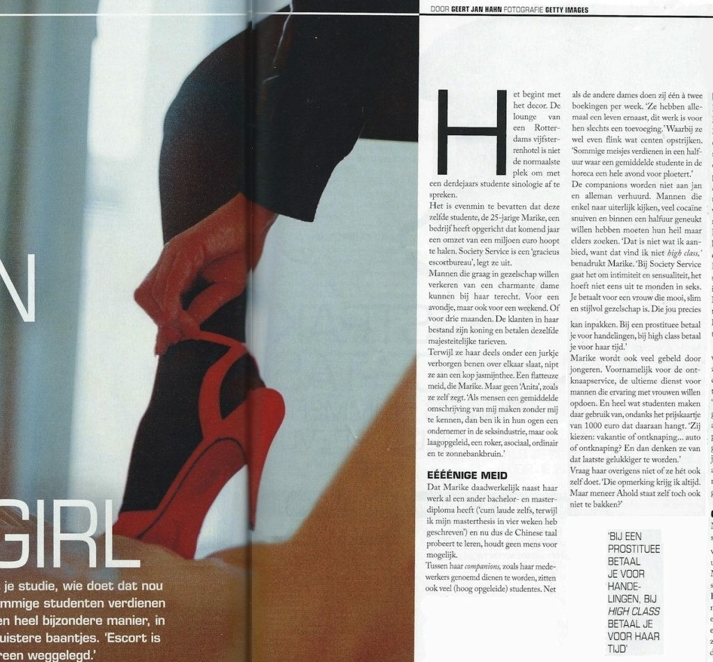 High class escortservice Society Service en eigenaresse Marike verschenen in 2010 diverse malen in het nieuws.