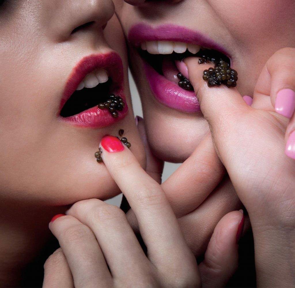 De optelsom van verleidelijke dames en verrukkelijke kaviaar doet ook óns hart sneller kloppen. Wíj hebben onze fantasie alvast tot werkelijkheid gemaakt – zie de pagina’s hiervóór.
