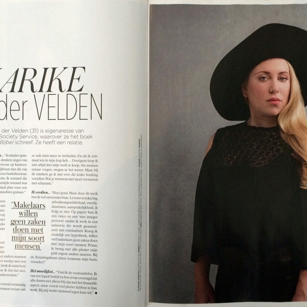 Op 1 mei publiceerde glossy Vrouw een serie portretten over vrouwen die werken in de seksindustrie. Eigenaresse Marike en high class escort Aria zijn geïnterviewd over hun baan in de seksindustrie. Lees en bekijk het artikel hier: