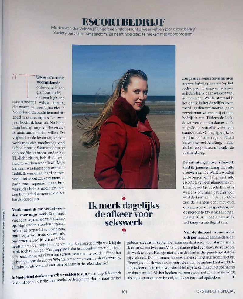 Vrouw Glossy editie over "opgebiecht" en het escortbedrijf van Marike